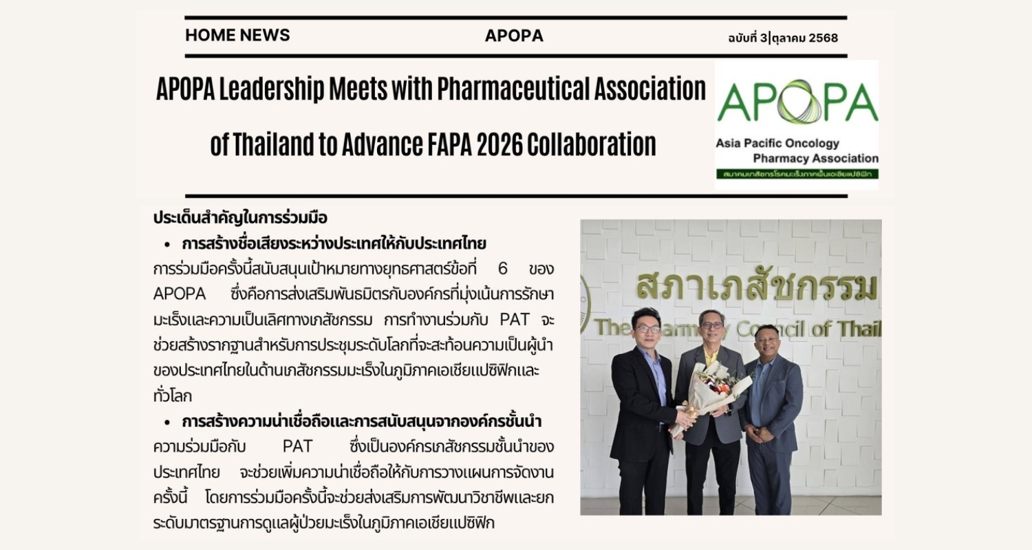 นายกสมาคมเภสัชกรโรคมะเร็งภาคพื้นเอเชียแปซิฟิก